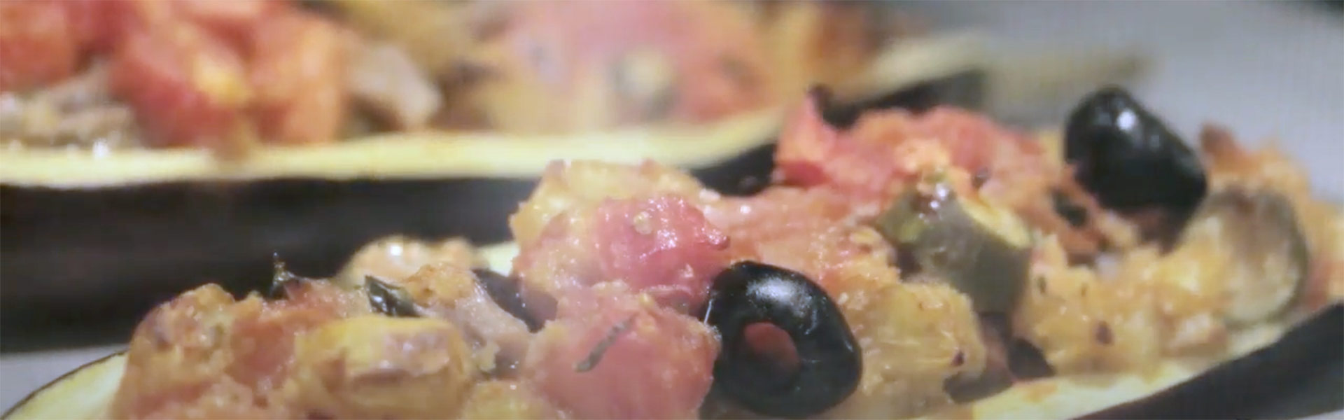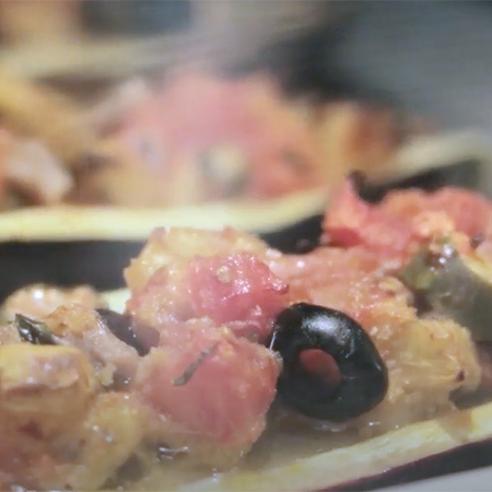 6. Mescolare gli ingredienti e riempire le melanzane aggiungendovi olio d’oliva